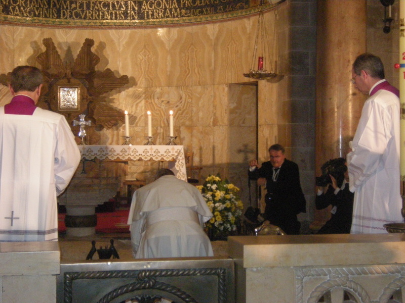 de Terre sainte lui ont faite à son entrée dans la basilique et l’humilité de cette homme épuisé au terme de ses deux journées harassantes, prenant le temps de se recueillir profondément,