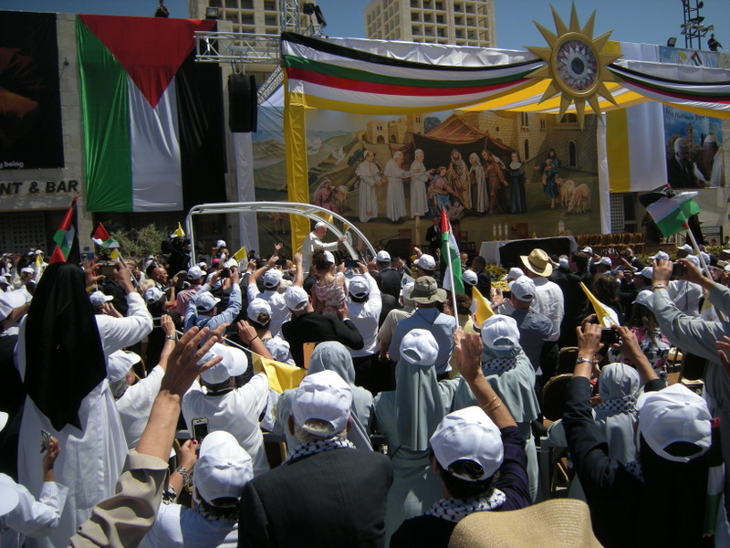 « La journée à Bethléem a été pleine de rencontres : sur la place en attendant le pape, on parle avec les voisins ; au moment où les hélicoptères sont passés au-dessus de nous,